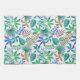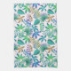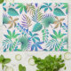 Lush tropical leaves seamless pattern in blue and green on a white background.