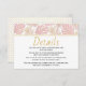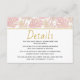 Tropical leaves pink and gold wedding details insert card. A pretty design that displays leaves of Split Leaf Philodendron (Monstera deliciosa) or Swiss Cheese Plant and palm leaves in blush pink with gold outline. The back is covered with a gold polka dot pattern on dark green. Choose it for your tropical coastal beach or destination wedding.