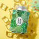 This cute, chic, modern design features lush tropical rainforest foliage, including dense palm fronds and philodendron leaves on a pale green background. In the centre of the design is a green edged white circle featuring a customisable monogram. You can personalise this item for yourself or a loved one by changing the monogram.