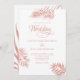 Perfect for destination beach weddings, this wedding invitation features rose gold tropical leaves with elegant script typography for a classic luxury vibe. The background is clean white, with a rose gold palm leaf on the back. Find matching RSVP and details cards, and other matching products in the collection.