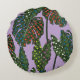 Tropical leaves seamless pattern on colourful pop round cushion