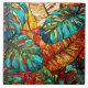 Tropical leaves Stained glass art Ceramic Tile