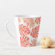 Modern living coral monstera and palm leaves tropical latte mug. The elements of this gorgeous design are a pattern made of coral monstera and palm leaves with gold outline and your monogram in a frame.