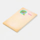 Large sized sticky notes with a cute illustration of a green tropical lizard surrounded by leaves and flowers on a turquoise blue colour. The background is a light beige colour.