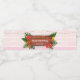 Water bottle with greenery tropical leaves, red & yellow floral, string lights, wood board ans pink watercolor background.