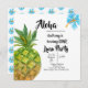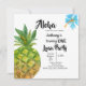 Tropical Luau celebration for a First birthday party. This invitation has a large watercolor pineapple off to the side with a blue hibiscus off the corner. Personalise with your party information.