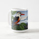 Start your day with a splash of nature’s brilliance. This ceramic mug features a stunning illustration of a tropical bird perched gracefully on a tree branch, surrounded by lush green foliage and misty forested hills