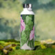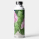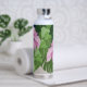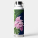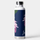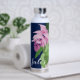 Tropical Medinilla Pink Flower on Dark Blue Name Water Bottle