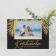 Glamourous faux gold glitter palm fronds on a black background highlight your favourite photo on these holiday Christmas photo cards. Mele Kalikimaka and your names on the bottom in chic lettering. High Definition for best quality. MORE COLORS and multi-photo style done for you in our collection.