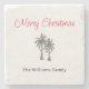 Tropical Beach Merry Christmas coaster, with a palm trees illustration and script typography. With customisable lettering, you add your own information. A festive addition to your holiday decor and entertaining.