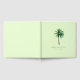 This wedding guest book features a tropical design with a centered illustration of a palm tree on a soft mint green background, evoking a serene and vacation-like atmosphere. The elegant serif font adds a touch of sophistication to the customizable names and date below the tree, making it perfect for beach-themed weddings or any celebration in a warm climate. The minimalist layout emphasizes the natural beauty of the palm tree, creating a calm and inviting mood that complements any event setting.