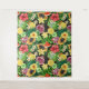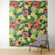 Tropical mix-fruit, flowers and leaves on black tapestry