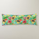 Tropical mix-fruit, flowers and leaves on blue body cushion