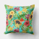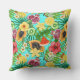 Tropical mix-fruit, flowers and leaves on blue cushion