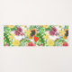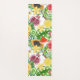 Tropical mix-fruit, flowers and leaves on white yoga mat