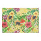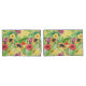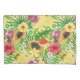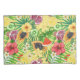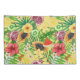 Tropical mix-fruit, flowers and leaves on yellow pillowcase