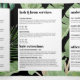 A watercolor illustration of green tropical leaves set on a black background adds a chic aesthetic to this stylish tri-fold brochure. A bold font on the front showcases your brand name against the dark background on the front cover. Update the customisable text to fit your brand, and personalise the details throughout the brochure for your own usage. These 5x7 brochures are the perfect size to display your price lists and menu of services, or describe your product line. A great marketing piece to hand out to potential clients to quickly introduce your business. Please contact the designer for help with special typesetting or layout variations. Art and design © 1201AM Design Studio | www.1201am.com