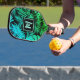 Pickleball is always more fun with a personalized, custom paddle. This striking, graphic, custom name paddle will help take you all the way to victory. A handwritten script monogram initial block overlays a distressed, graphic palm leaf pattern of vivid teal blue, turquoise and green ombre gradations on black. Personalize with your monogram initial. Choice of 3 grip colors. Makes a fun and stylish statement every time you use it. Own the court every time you play!
