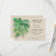 Tropical monstera leaf watercolor on these wedding RSVP Cards along with meal choices for your event. Click CUSTOMIZE button to change fonts, font colour and the background colour, too.