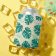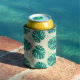 Big palm Hawaiian tropical leaves and aloha handwriting style script over a watercolor washed cream ivory background decorative personalised can cooler (your name on the bottom).