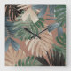 Tropical Monstera Jungle Leaves 2 Square Wall Clock