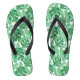 This pair of flip flops features a hand painted monstera and tropical leaf pattern in green and white!