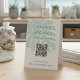 Elevate your business display with this Island Escapes tabletop tent sign, crafted from sturdy plastic for everyday use. Featuring a fresh mint green monstera leaf design and modern typography, it blends style with function. The customisable layout includes space for your business name, tagline, and a QR code, giving customers quick and convenient access to your website or menu. Perfect for vacation rentals, boutiques, and coastal-inspired shops, this tent sign adds a polished finishing touch to any professional setting.