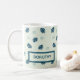 Tropical monstera leaves monogram on blue coffee mug