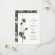 Tropical save the date card features palm leaf greenery. Monstera palm leaf pattern on back with monogram and date.