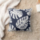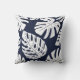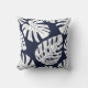 Tropical Navy Blue White Palm Monstera Leaves Cushion
