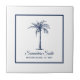 Tropical Navy Blue White Palm Tree Custom Ceramic Tile