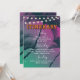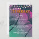 Tropical Night timeline itinerary with tropical design, string lights, palm trees and green & purple sky background.