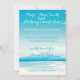 Beach Wedding Theme. Beautiful tropical beach sandy beach shoreline with waves crashing from the clear teal ocean, sunburst sunset (or sunrise) white palm tree and stylised seagull grace the setting. Casual or formal, for a beach wedding or destination island wedding - This is part of a complete wedding suite with complimentary wedding stationery found at The Barefoot Bride http://zazzle.com/TheBarefootBride