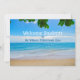 Welcome to class, message from teacher cards. Personalise with text on front and back. The image is tropical blue ocean water and beach sand. Sample text is, “Welcome students to [teacher’s name here] First / Any grade”. On the back, create a message to the student.