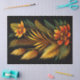 This illustration features orange tropical flowers and reeds, captured in stunning clarity with intricate and detailed designs. The flowers are beautifully drawn with delicate petals and intricate patterns, while the reeds are depicted with finely detailed leaves and stems. The black background provides a beautiful contrast, allowing the vibrant colours of the flowers and reeds to stand out even more. Rendered with state-of-the-art technology, it is a beautiful and artistic representation of nature.