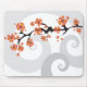 Tropical Orange Hibiscus Flower Fusion Grey Swirls Mouse Pad