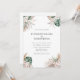 The front of the invitation features carefully crafted compositions of tropical elements in each of the four corners. Trópusi orchids, monstera leaves, palm leaves, and pampas grass elegantly frame the invitation text, harmonising with one another to create a visually stunning arrangement. The boho elegant font used for the text adds a touch of sophistication, enhancing the overall elegance of the design.