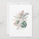 On the back of the invitation, a beautiful tropical wedding bouquet is showcased, incorporating the same elements of tropical orchids, monstera leaves, palm leaves, and pampas grass. This adds an extra touch of beauty and reinforces the tropical theme.