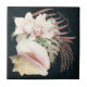 Tropical Orchid Floral Navy Wood Beach Seashells Ceramic Tile