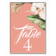 Tropical Orchids and Palm on Coral Table Number