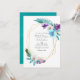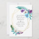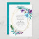 Colourful watercolor tropical leaves and orchids wedding invitation with gold geometric frame and turquoise blue watercolor wash reverse. Ideal for any given theme or garden wedding. The QR code on the reverse directs to your wedding site where people can learn more and rsvp.