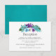 Colourful watercolor tropical leaves and orchids wedding reception cards with turquoise blue watercolor wash reverse.
