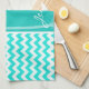 Tropical Palm; Aqua Colour Chevron Tea Towel
