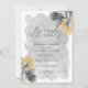 Elegant and chic tropical palm brunch & bubbly invitation features sophisticated arrangements of black line drawn palm leaves and gold textured foliage surrounding a modern watercolor frame. Brunch & bubbly is written in a modern and open script. A soft and romantic grey watercolor wash pulls the design together on the front and back. Very easy to customise. This item is part of the Elegant Tropical Palm collection. The timeless aesthetic makes this appropriate for any time of the year.