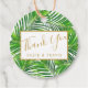Lush green palm tree leaves with modern gold geometric border favour tag is perfect for a tropical island wedding or a beach theme bat mitzvah or birthday party. Text and background colours changed by clicking CUSTOMIZE FURTHER. The Custom Paper Works Zazzle Designer Shop has many coordinating beach destination wedding reception items.