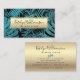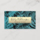 Present your best self to your clients, with Hawaiian tropical flair, whenever you use these chic, striking, stylish, modern, custom name business cards. Crisp, black handwritten script typography on a faux gold foil rectangle overlays a graphic, elegant, tropical palm leaf pattern of dusty teal blue gradations on black. Personalise with your full name and business on the front. Fill in the faux gold foil back side with your phone numbers, address, email, website, and social media accounts. Makes a chic, professional, and stylish statement wherever you go.