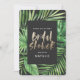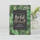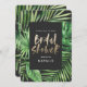 Modern tropical palm leaf watercolor foliage bridal shower invite. Hand painted gold effect script text. Part of a on trend summer collection. Background colour can be changed.