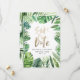 Modern tropical palm leaf watercolor foliage save the date cards. Hand painted gold effect script text. Part of a on trend summer collection. Background colour can be changed.