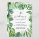Modern tropical palm leaf watercolor foliage invitation. script text. Part of a on trend summer collection. Background colour can be changed.