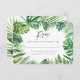 Modern tropical palm leaf watercolor foliage rsvp reply card. script text. Part of a on trend summer collection. Background colour can be changed.